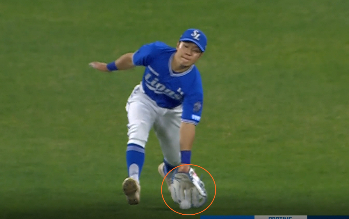 삼성 중견수 김지찬이 앞으로 달려나오면서 글러브를 바닥쪽으로 대고 포구에 성공했다. 최초 판정은 아웃. 그런데 김지찬의 포구 자세나 타구의 속도, 방향을 감안했을때 땅에 한번 닿고 포구된 것이 아니냐는 의심을 해볼 수 있는 상황이었다.
