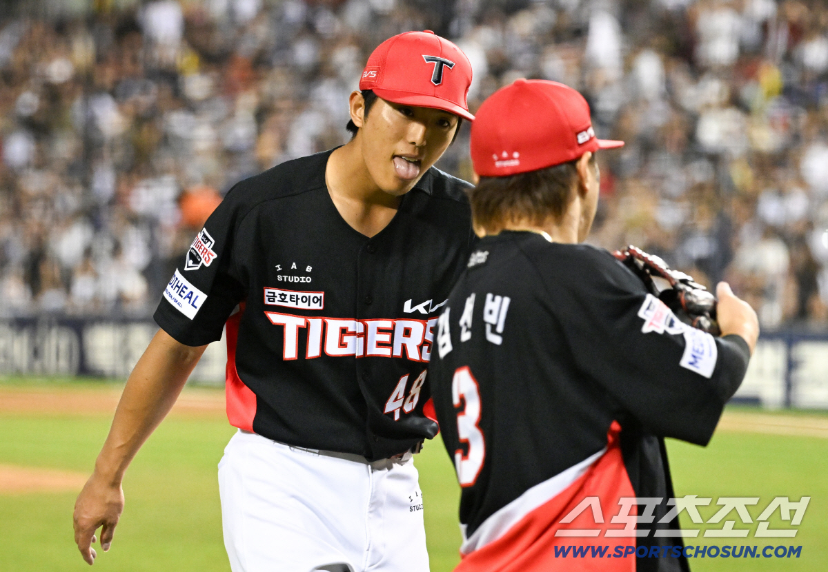 머쓱한 미소와 함께 더그아웃으로 향하던 이의리는 김선빈의 칭찬에 혀를 내밀며 힘들다는 제스처를 취하는 등 여유까지 보였다.