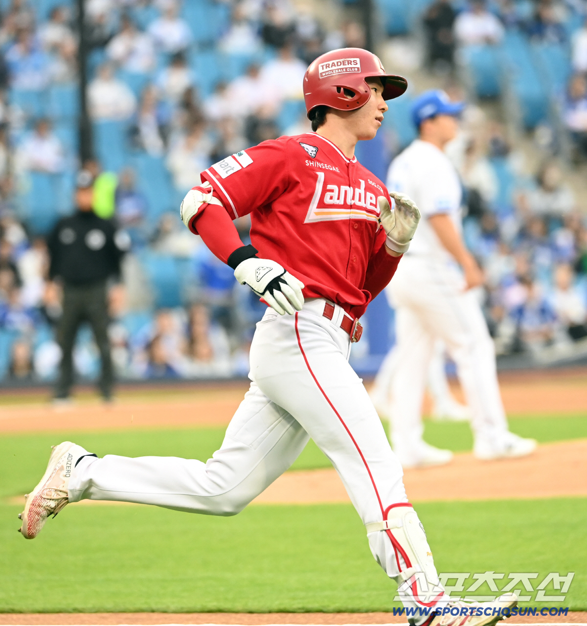 박성한은 삼성 선발투수 최원태의 초구를 때렸다. 가운데 낮은 코스로 들어온 144㎞ 패스트볼을 잡아당겼다. 1루와 2루 사이를 깔끔하게 꿰뚫었다.
