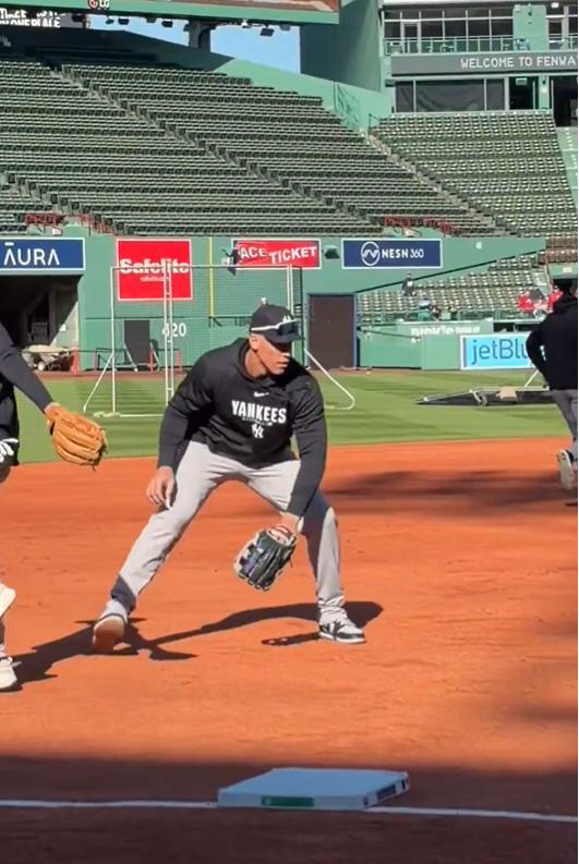 [스포츠조선 강우진 기자]2m1의 애런 저지가 3루수로 뛰는 모습을 볼 수 있을까. 외야에서 활약하고 있는 저지가 3루 수비 연습을 하는 장면이 나오면서 팬들의 관심은 커지고 있다.