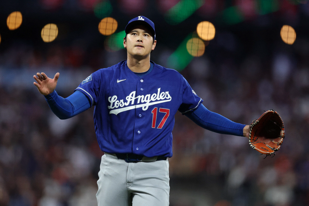 SAN FRANCISCO, CALIFORNIA - APRIL 22: Shohei Ohtani #17 of the Los Angeles Dodgers reacts after the end of the sixth inning of their game against the San Francisco Giants at Oracle Park on April 22, 2026 in San Francisco, California. Ezra Shaw/Getty Images/AFP (Photo by EZRA SHAW / GETTY IMAGES NORTH AMERICA / Getty Images via AFP)