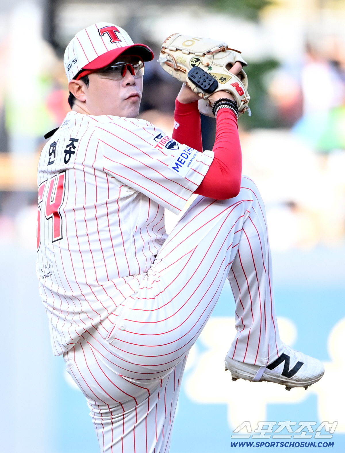 양현종은 직구(30개) 체인지업(27개) 슬라이더(22개) 커브(11개)를 섞어 롯데 타선을 요리했다. 직구 구속은 최고 143㎞, 평균 139㎞로 형성됐다. 구위보다는 노련한 경기 운영 능력이 돋보였다.
