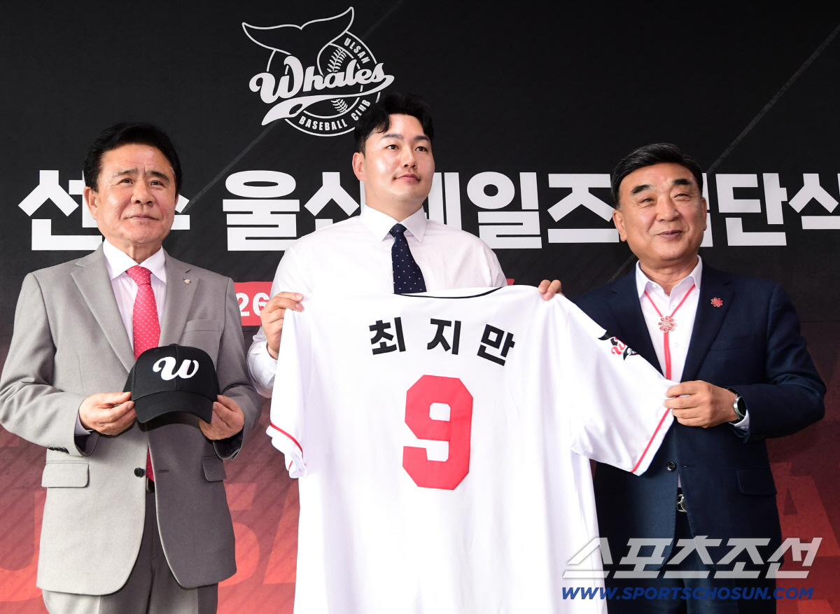 최지만은 27일 울산 문수구장에서 공식 입단식을 갖고 울산 웨일즈의 일원이 됐다. 현재 무릎 재활 중인 최지만은 7월 복귀를 목표로 준비한다. 최지만은 "야구는 혼자가 아닌 9명이 같이 달리는 스포츠"라며 백넘버의 의미를 밝혔다.