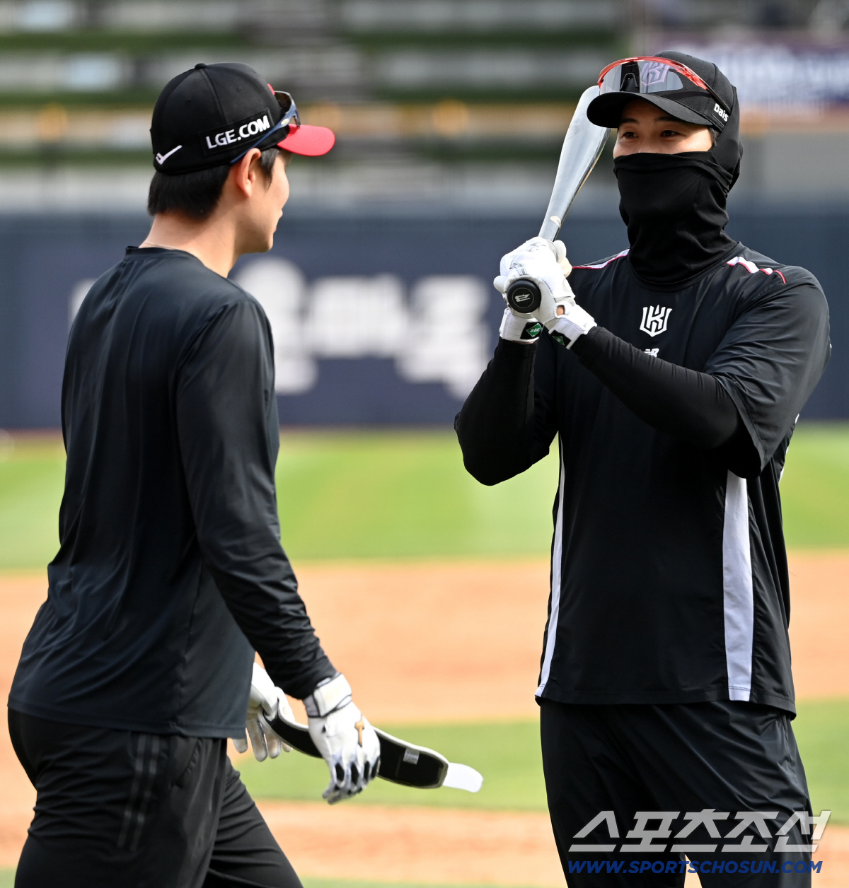 28일 수원KT위즈파크에서 열린 LG와 KT의 경기, 배정대와 홍창기가 이야기를 나누고 있다. 수원=허상욱 기자wook@sportschosun.com/2026.04.28/