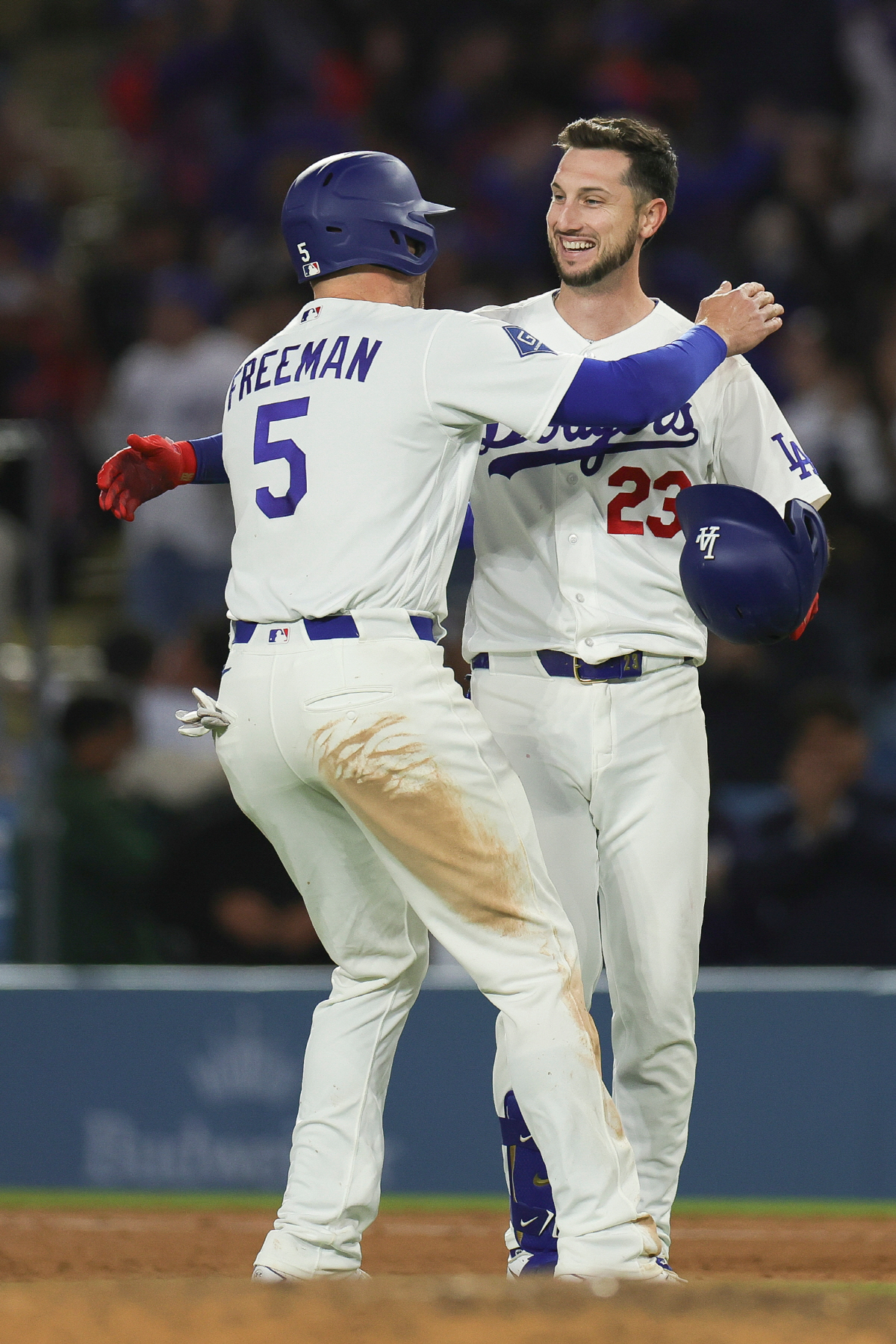 정상급 마무리 피트 페어뱅크스가 등판한 가운데 다저스는 선두 앤디 파헤스가 풀카운트에서 7구째 볼넷을 골라 찬스를 마련했다. 이어 대타 돌튼 러싱마저 풀카운트에서 볼넷을 얻어 무사 1,2루. 미구엘 로하스가 번트에 실패해 아웃카운트가 하나 늘었으나, 1번타자 오타니 쇼헤이가 2루타를 날려 파헤스를 홈으로 불러들였다.
