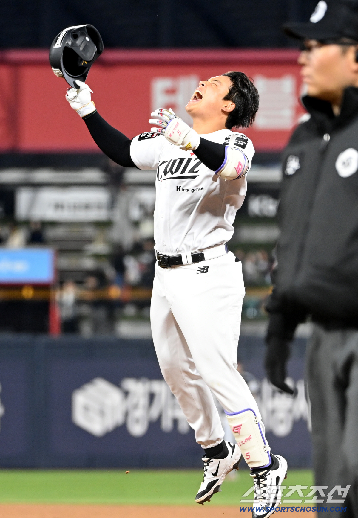 하지만 LG는 8회초 KT 필승조 한승혁을 상대로 2사후 문보경의 볼넷, 폭투, 송찬의의 안타를 묶어 2사 2,3루를 만들었다. 이어 조기등판한 KT 마무리 박영현을 상대로 오지환이 역전 적시타를 터뜨리며 다시 재역전에 성공했다. 박동원의 적시타로 1점을 추가, LG가 5-3으로 앞서자 경기는 한쪽으로 기운듯 보였다.