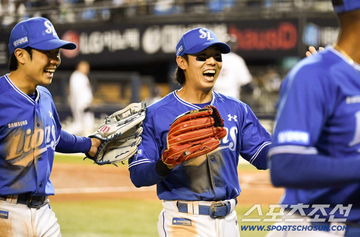 그 한 번의 전력 질주가 선취점으로 이어졌다. 무사 2,3루 디아즈의 희생타 때 여유 있게 홈을 밟은 김성윤은 두 팔을 번쩍 들어 올렸다. 가라앉아 있던 삼성 더그아웃 분위기가 단숨에 뜨겁게 달궜다.