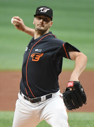 올러는 직구(40개)와 슬라이더(34개) 커브(12개) 체인지업(8개) 투심패스트볼(8개) 스위퍼(1개)를 섞어 롯데 타선을 잠재웠다. 직구 최고 구속은 152㎞, 평균 구속은 149㎞였다. 103구 가운데 스트라이크가 75개에 이를 정도로 공격적이었다.