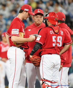 공교롭게 1회말 1번타자를 상대하는 도중 경기가 우천 중단되면서 37분간 멈추는 상황이 벌어지기도 했지만, 이날 앤더슨이 던진 공은 직구의 위력이 보이지 않았다. 앤더슨의 직구는 리그 최고 수준이다. 직구 구위만 놓고 보면, 올해 투수 4관왕을 차지한 코디 폰세(한화)보다 낫다는 평가도 받는다. 그런데 그 직구가 힘을 잃으니, 자꾸 변화구를 던져 유인구로 승부를 하게 되고 앤더슨의 장점이 전혀 보이지 않았다.