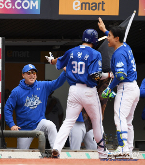 더그아웃으로 들어오는 최원태를 원태인 구자욱 등 다른 동료들이 마치 제 일처럼 격렬하게 기뻐하며 맞이했다.