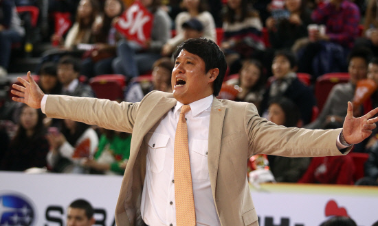 SK 문경은 감독대행이 15일 전자랜드전에서 선수들에게 작전지시를 하고 있다. 사진제공=KBL