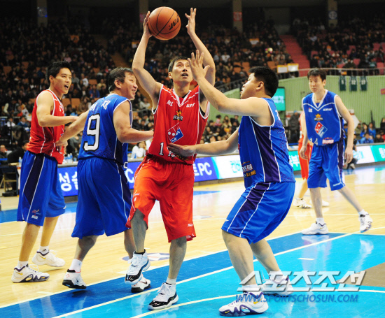 28일 서울 잠실실내체육관에서 프로농구 15주년 레전드 올스타전이 열렸다. '허동택트리오(허재 강동희 김유택)'와 '원조 오빠부대(우지원 문경은 이상민)가 3대3 대결을 펼쳤다. 이상민이 골밑슛을 시도하고 있다. 잠실=정재근 기자 cjg@sportschosun.com/2012.01.28/