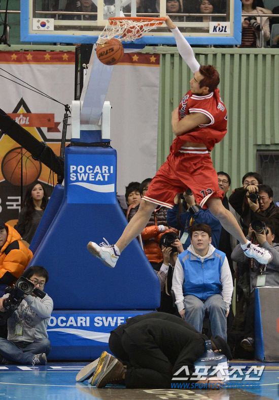 29일 서울 잠실실내체육관에서 2011-2012 프로농구 올스타전이 열렸다. '슬램덩크' 강백호로 변신한 KT 김현민이 덩크슛을 성공시키고 있다. 잠실실내=정재근 기자 cjg@sportschosun.com/2012.01.29/