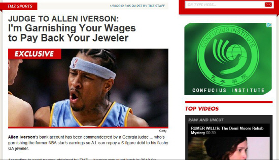 1일(한국시각) 미국의 엔터테인먼트 전문 매체 'TMZ' 등 현지 언론들에 따르면 미국 조지아주 법원은 최근 아이버슨의 은행 계좌와 향후 수입을 압류하는 판결을 내렸다.