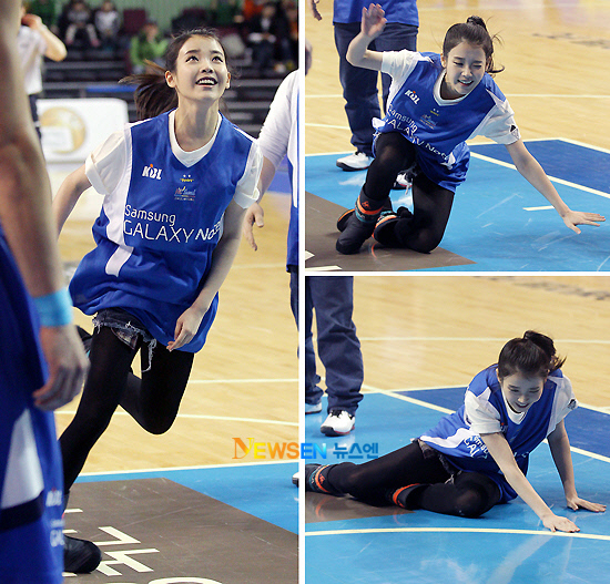 이날 아이유는 하프타임 때 미니 콘서트를 열어 관중들의 환호를 받았다. 아이유는 "잠실 썬더스 홈구장에 가득 찬 관중분들에게 하프타임 공연으로 즐거움을 더해 드렸으면 한다"고 밝혔다. <스포츠조선닷컴, 사진=뉴스엔>
