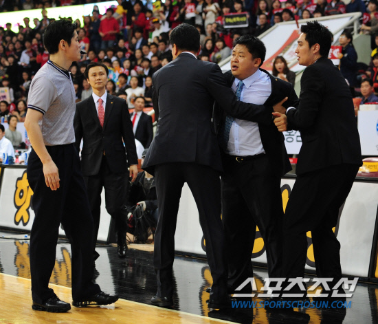 결국 5차전에서 참았던 불만이 폭발했다. 벤슨은 제대로 파울을 지적하지 않는다며 거칠게 항의하다 퇴장당했다.한 해설위원은 "벤슨이 항의하기 직전 상황도 파울이었다"고 했다. 동부 강동희 감독도 폭발했다. 단 한차례도 그런 적이 없었던 두 사람이었다.