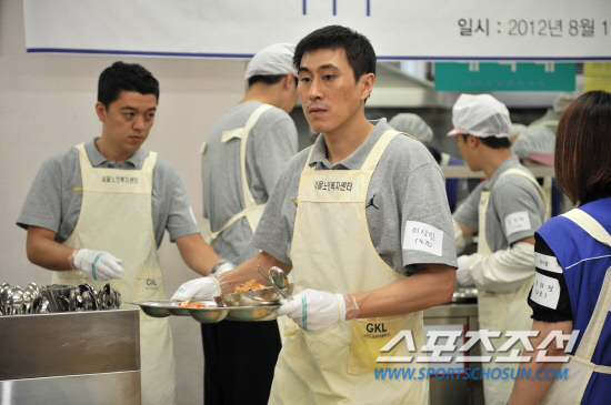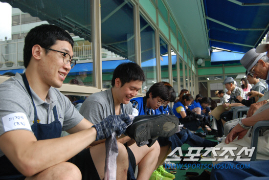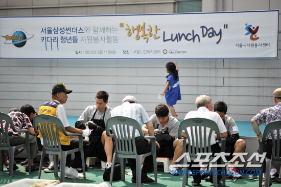 삼성 썬더스가 서울시자원봉사센터와 함께 11일 서울 종로구에 위치한 서울노인복지센터에서 봉사활동을 펼쳤다. 선수단은 서울노인복지센터 어르신들께 급식봉사 및 구두닦이와 안마봉사를 했다. 사진제공=삼성 썬더스 구단