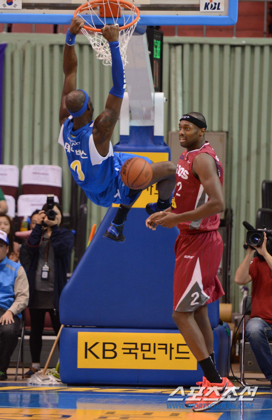 14일 오후 잠실 실내체육관에서 2012-2013 프로농구 삼성과 LG의 경기가 열렸다. 삼성 데이비스가 통쾌한 덩크슛을 성공시키고 있다. 잠실= 김경민 기자 kyungmin@sportschosun.com / 2012.10.14.