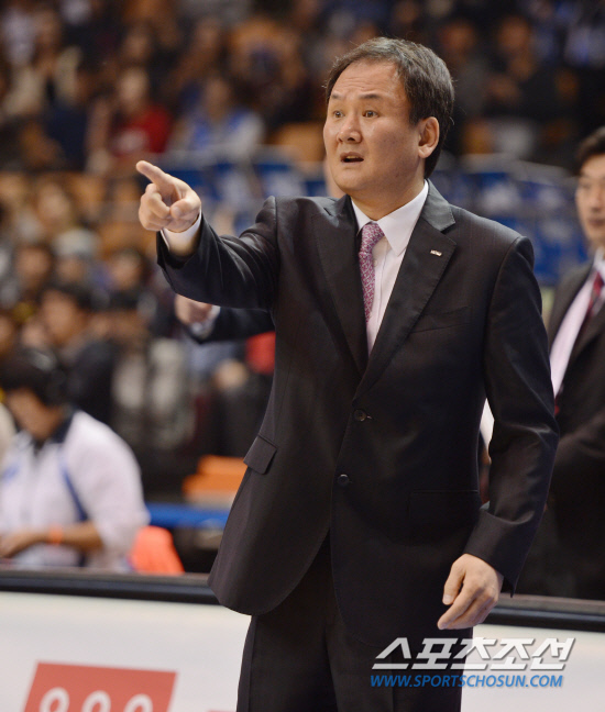2012 KB국민카드 프로-아마 최강전 인천 전자랜드와 경희대의 경기가 29일 고양 실내체육관에서 열렸다. 경희대 최부영 감독이 분주하게 작전지시를 내리고 있다. 고양=최문영 기자 deer@sportschosun.com /2012.11.29/