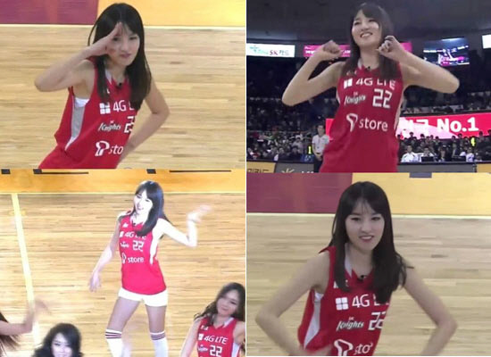 장유례 아나운서는 지난 9일 서울 송파구 잠실학생체육관에서 열린 '2012-2013 KBL 프로농구' 서울 SK 나이츠와 울산 모비스의 경기에서 시투와 함께 치어리딩에 도전했다.