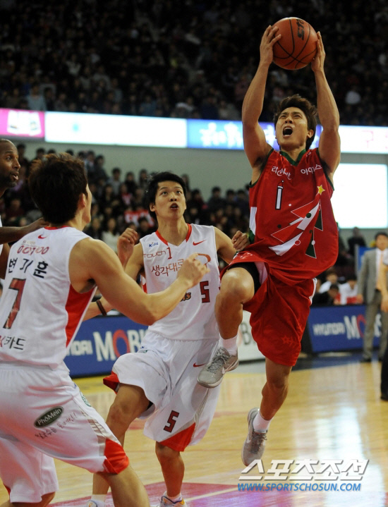 김태술 10득점 3리바운드 6어시스트. 김선형 8득점 5리바운드 7어시스트. 기록상으로는 두 사람의 맞대결 승패를 논하기 힘들다. 하지만 SK의 11연승이 저지된 양팀의 경기에서 확실한 건 김태술의 판정승이었다. 프로농구 대세남으로 떠오른 김선형이지만 김태술을 넘어설 수 없는게 딱 하나 있었다. 바로 세트 오펜스 상황에서의 경기 운영과 패싱이었다.
