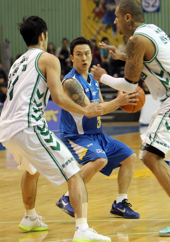 삼성-동부 전이 열린 13일 잠실실내체육관. 2쿼터 3분여가 흐른 시점에 관중석이 술렁였다. 백넘버 3번. 삼성 김승현이 교체 출전을 위해 라인 앞에 섰다.