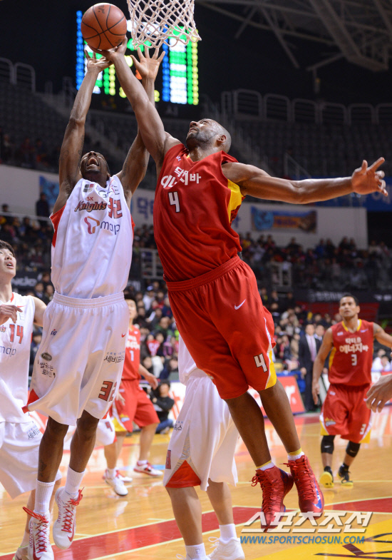| 2012-2013 프로농구 고양 오리온스와 서울 SK의 경기가 16일 고양실내체육관에서 열렸다. SK의 헤인즈가 오리온스의 윌리엄스와 치열하게 리바운드 볼을 다투고 있다. 고양=최문영 기자 deer@sportschosun.com /2013.01.16/ |