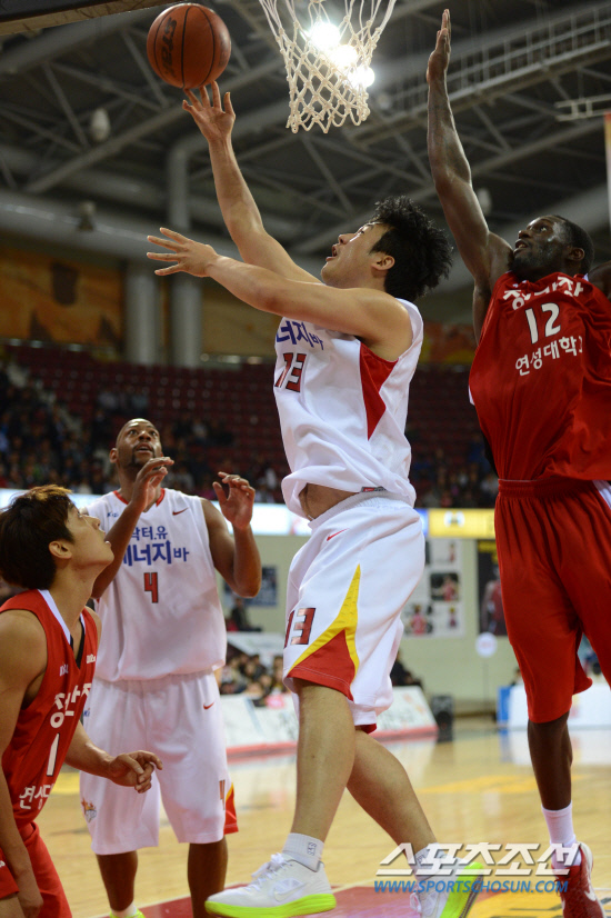 안양 KGC와 고양 오리온스의 2012-2013 프로농구 경기가 26일 안양실내체육관에서 열렸다. 오리온스 김동욱이 KGC 파틸로의 수비를 피해 골밑슛을 시도하고 있다. 안양=허상욱 기자 wook@sportschosun.com/2012.10.26/