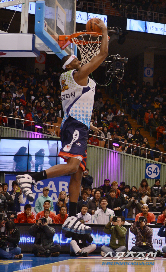 프로농구 '별들의 잔치'인 '2013 프로농구 올스타 파티'가 27일 잠실실내체육관에서 열렸다. 이번 올스타전에는 스피드슛, 덩크슛, 3점슛 콘테스트와 슈퍼스타 KBL 등 다채로운 행사가 열렸다. 하프타임 이벤트로 열린 덩크슛 컨테스트에서 드림팀 벤슨이 덩크슛을 시도하고 있다. 잠실=김경민 기자 kyungmin@sportschosun.com / 2013.01.27.