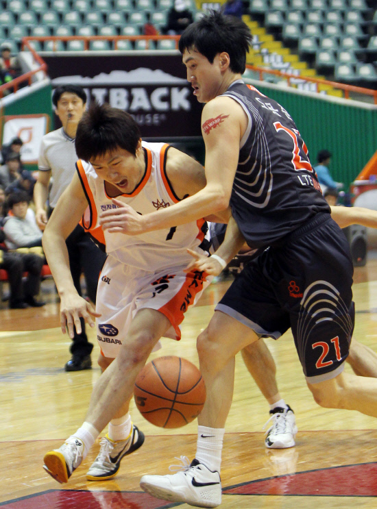 전자랜드 유도훈 감독은 승리했지만 웃을 수 없었다. 21일 부산 KT와의 원정경기서 거둔 70대66 진땀승. 대가가 컸다. 에이스 문태종이 왼 발목을 심하게 다쳐 실려나갔다. 경기 내용도 좋지 않았다. 턴오버가 14개나 됐다. 유 감독은 "문태종 부상이 심각한 것 같다. 왼발목을 접지르는 과정에서 아킬레스쪽까지 다친 것 같다. 내일 병원에 가서 정확한 진단을 받아봐야 겠지만…"이라며 무거운 표정을 감추지 못했다. 전자랜드는 문태종 없이 험난한 일정을 소화해야 한다. 이틀 후인 23일 2위 모비스와 인천 홈경기를 치른 뒤 24일 창원으로 이동해 LG와의 원정경기를 해야 한다. 4일간 부산→인천→창원을 돌며 3경기를 치르는 5라운드 마지막 일정. 그래도 유 감독은 "문태종이 없지만 국내선수들의 수비 등 다른 방향으로 커버해나가겠다. 미리 얘기한대로 일단 5라운드 끝까지 2위를 포기하지는 않을 것"이라고 천명했다.