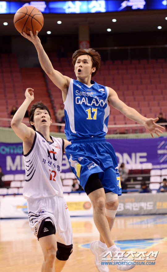 프로농구 서울 삼성과 부산 KT의 경기가 6일 잠실실내체육관에서 펼쳐 졌다. 서울 삼성 이시준(오른쪽)이 부산 KT 김현수를 따돌리고 언더 슛을 시도하고 있다. 잠실=조병관기자 rainmaker@sportschosun.com/2013.03.06/ |