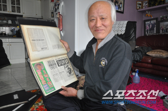 | 문경은 감독의 부친 문귀곤씨가 아들의 기사 스크랩북을 들어보이고 있다. 노주환 기자 |