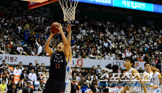 | 19일 부산 사직실내체육관에서 프로농구 KT와 KCC의 경기가 열렸다. '국보센터' 서장훈 선수의 마지막 경기가 열렸다. 서장훈이 골밑슛을 시도하고 있다. 부산=송정헌 기자 songs@sportschosun.com/2013.3.19 |