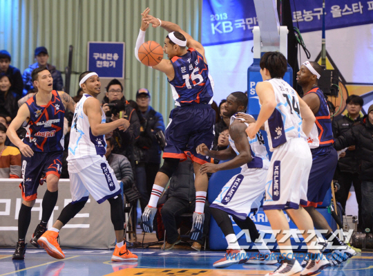 프로농구 '별들의 잔치'인 '2013 프로농구 올스타 파티'가 27일 잠실실내체육관에서 열렸다. 이번 올스타전에는 스피드슛, 덩크슛, 3점슛 콘테스트와 슈퍼스타 KBL 등 다채로운 행사가 열렸다. 드림팀 문태영이 볼을 놓치고 있다. 잠실=김경민 기자 kyungmin@sportschosun.com