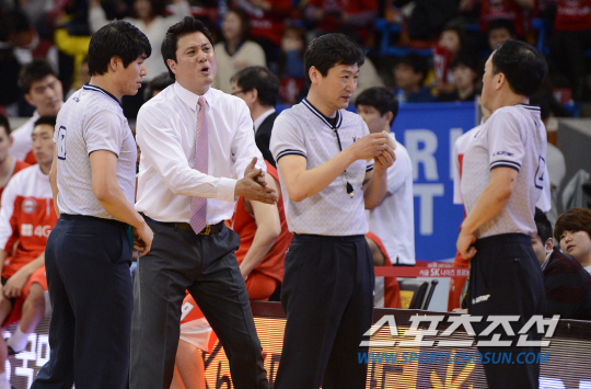 14일 오후 잠실 학생체육관에서 2012-2013 프로농구 챔피언결정전 2차전 울산 모비스와 서울 SK의 경기가 열렸다. 4쿼터 SK 문경은 감독이 심판 판정에 항의하고 있다. 잠실=김경민 기자 kyungmin@sportschosun.com