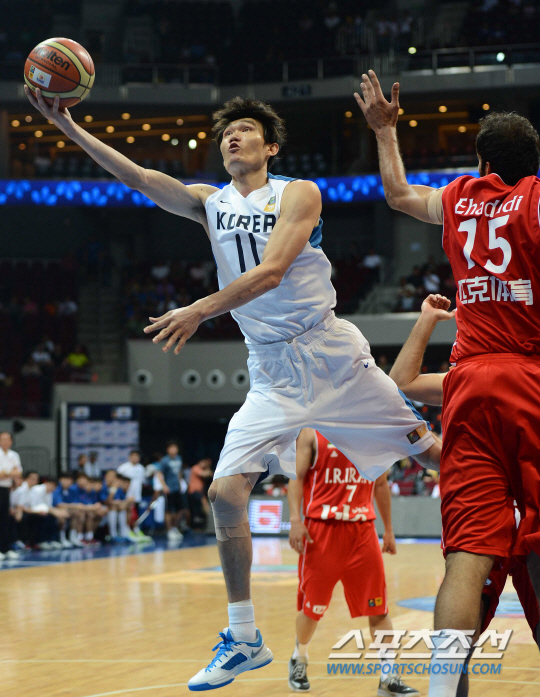 남자농구대표팀의 센터 김주성은 승리가 절실하다. 리바운드 하나가 승패를 가른다고 생각한다. 몸싸움도 적극적으로 한다. 내년 스페인 월드컵에 한국이 꼭 나가야 한다는 생각이다. 2013 남자농구아시아선수권대회 한국과 이란의 조별예선 경기가 2일 필리핀 마닐라 몰오브아시아 아레나에서 열렸다. 한국 김주성이 이란 하다디를 완벽하게 따돌리며 골밑슛을 시도하고 있다. /2013.08.02/ <마닐라(필리핀)=사진공동취재단> (스포츠조선) 정재근 기자 cjg@sportschosun.com