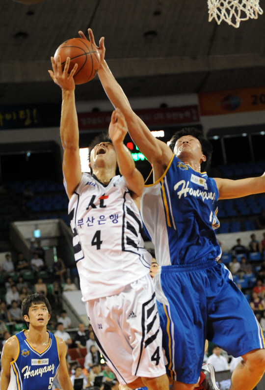 경기는 '통신 라이벌' 부산 KT와 서울 SK가 이겼다. 나란히 8강에 올랐다. KT와 SK는 15일 개막된 2013 프로-아마 최강전 첫날 대학팀들을 각각 꺾고 2라운드에 진출했다. KT는 한양대와의 첫 경기에서 71대56으로 승리했다. 19일 고양 오리온스-고려대 전 승자와 8강전을 치른다. 에이스 조성민과 주포 김도수가 빠진 KT는 전반 29-29로 고전했다. 하지만 후반 리바운드 우위를 앞세워 점수차를 벌리기 시작했다. 3쿼터에 8점을 올린 민성주와 가드 김현수의 움직임이 활발해졌다. 한양대 선수들은 후반 들어 승리 욕심이 난듯 다소 긴장된 플레이 속에 고전하다가 흐름을 내주고 말았다. KT 김현수가 16득점을 올렸고, 센터 민성주가 10득점-13리바운드로 더블더블을 기록했다. 한양대는 오창환이 3점슛 2개 포함, 19득점으로 양팀 합계 최다득점을 올렸지만 팀 패배로 빛이 바랬다.