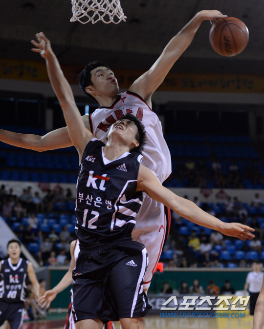 19일 오후 서울 잠실학생체육관에서 2013 프로-아마 최강전 8강 KT와 고려대학교의 경기가 열렸다. KT 김현수(오른쪽)의 슛이 고려대 이승현의 수비에 막히고 있다. 잠실학생체육관=김경민 기자 kyungmin@sportschosun.com