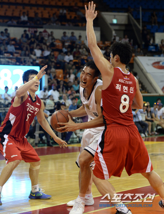 20일 잠실학생체육관에서 프로-아마 최강전 KGC와 상무의 8강전 경기가 열렸다. 상무 김현민이 KGC 수비를 제치며 레이업슛을 시도하고 있다. 잠실=송정헌 기자 songs@sportschosun.com/2013.8.20