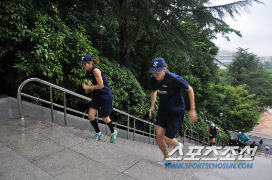 여자농구 신한은행 선수들은 지난달 18일부터 2주간 광주에서 국내 전지훈련에 돌입했다. 지난달 초 홈구장인 안산와동체육관에서 시작돼 한달째 계속되고 있는 여름 체력훈련의 마무리 단계이다.
