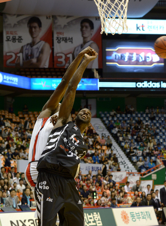 약체로 평가받던 KT는 정작 뚜껑을 열자 만만치 않은 전력을 과시하고 있다. 개막전부터 서울 삼성을 꺾은 KT는 이?날 모비스에게 패했지만 결코 약한 팀의 모습이 아니었다. 팀의 중심은 에이스 조성민과 새 용병 앤서니 리처드슨. 둘은 2경기서 무려 100점이 넘는 득점을 합작했다. 부상 중인 김현중 등 가드진이 안정되고, 장재석이 골밑에서 힘을 보탤 경우 KT는 다크호스로 부상할 전망이다.