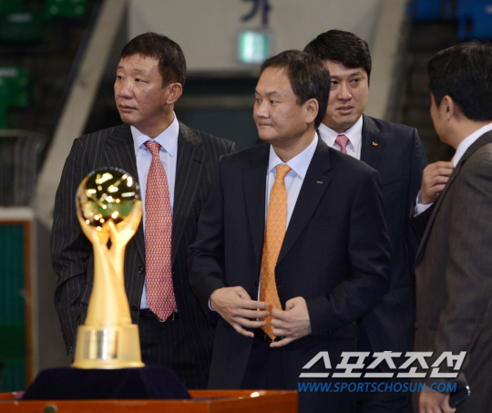 모비스는 15일 전주실내체육관에서 벌어진 2013~14시즌 1라운드 KCC를 101대58로 역대 최다 점수차인 43점차로 대파했다. 모비스는 2012~13시즌 챔피언결정전 우승팀이다. 모비스는 이번 시즌에도 강력한 우승 후보다. 모비스는 지난 시즌 우승 전력을 그대로 유지했다. 하지만 모비스는 정규시즌 우승을 SK에 내주고 말았다. 7일 오전 서울 잠실학생체육관에서 2013-2014 KB 국민카드 프로농구 미디어데이가 열렸다. 미디어데이에서 KCC 허재 감독(왼쪽부터), 모비스 유재학 감독, SK 문경은 감독이 우승 트로피를 살펴보고 있다. 잠실= 김경민 기자 kyungmin@sportschosun.com / 2013.10.07.
