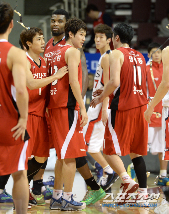 KGC가 통산 최다 연승 신기록(17연승)을 세운 모비스를 막아섰다. 23일 안양실내체육관에서 열린 홈경기에서 모비스를 85대81로 제압하면서 18연승 달성을 저지했다. 외국인선수 에반스는 25득점 16리바운드로 더블-더블을 기록했고, 김태술이 12득점 9어시스트로 공격의 활로를 뚫었다. 15득점을 올린 김윤태는 3쿼터에만 13득점을 올리며 분위기를 반전시켰다.