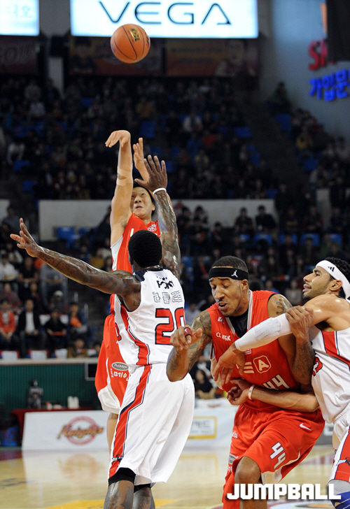 27일 잠실학생체육관에서 열린 모비스와의 1라운드 홈경기를 앞둔 SK 문경은 감독에게 SK의 달라진 점을 물었다. "헤인즈와 김선형에게 편중된 공격 옵션을 다양화하기 위해 오프시즌 동안 노력했습니다."