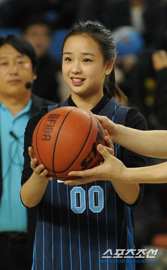 체조요정 손연재가 30일 KCC-동부전서 시구를 한다. 사진은 지난 2011-2012시즌 개막전에서 시구하는 손연재의 모습. 송정헌 기자 songs@sportschosun.com