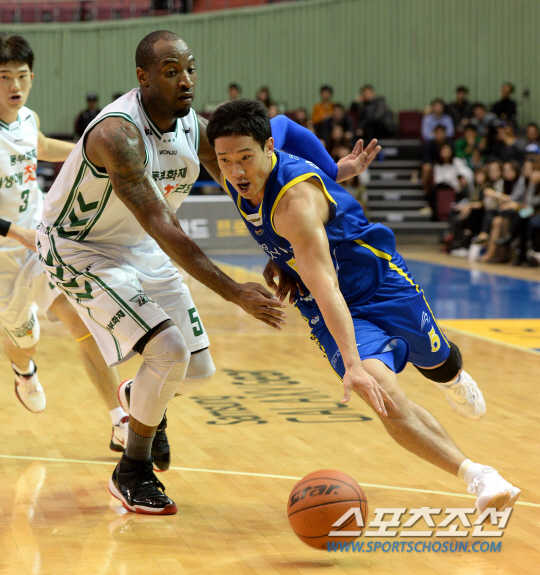 서울 삼성과 원주 동부의 2013-2014 프로농구 경기가 22일 잠실실내체육관에서 열렸다. 삼성 이정석이 동부 허버트힐의 수비를 피해 돌파를 시도하고 있다. 잠실실내=허상욱 기자 wook@sportschosun.com/2013.10.22/