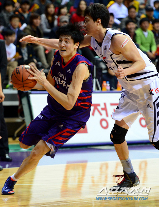 14일 고양체육관에서 프로농구 오리온스와 KT의 경기가 열렸다. 오리온스 최진수가 KT 송영진을 제치며 돌파를 시도하고 있다. 고양=송정헌 기자 songs@sportschosun.com/2013.11.14 |