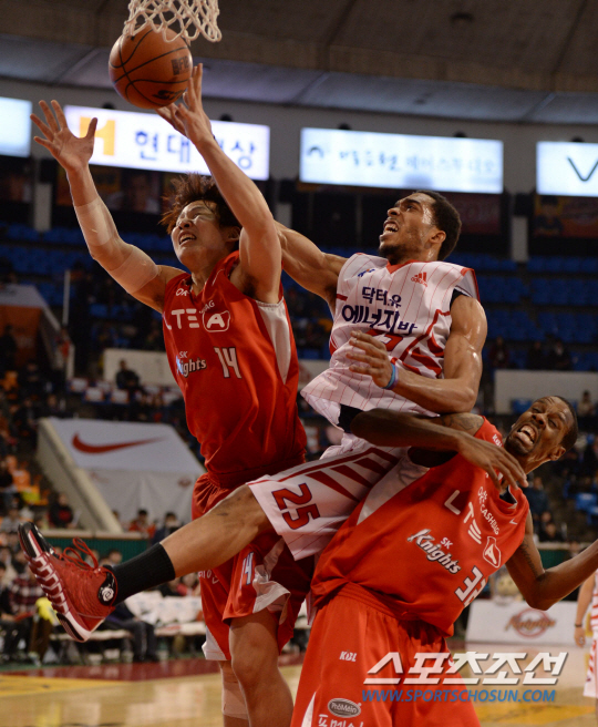 | 4일 오후 서울 잠실학생체육관에서 2013-2014 프로농구 오리온스와 SK의 경기가 열렸다. 오리온스 랜스(가운데)가 SK 헤인즈와 최부경 사이에서 루즈볼을 다투고 있다. 잠실학생체=김경민 기자 kyungmin@sportschosun.com / 2013.12.04. |