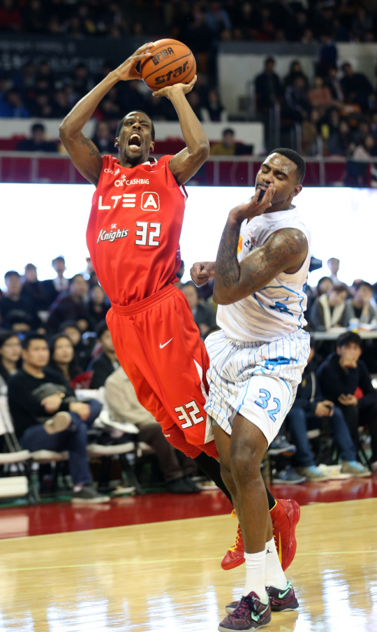 SK는 14일 잠실학생체육관에서 열린 KCC와의 홈경기에서 3쿼터 상대에 단 3점 만을 내주는 강력한 수비와 외국인 에이스 애런 헤인즈(19득점)의 활약을 앞세워 76대66으로 승리했다. 이날 승리로 SK는 18승7패가 되며 단독 1위에 올랐다. 이날 경기 전까지 공동 1위를 달리던 LG가 모비스에 패하며 승차를 1경기로 벌렸다.