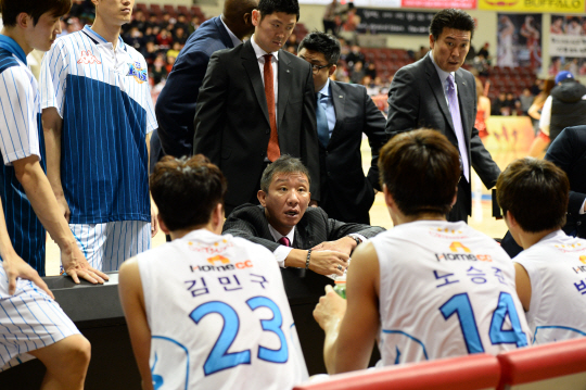 KCC 허 재 감독이 단단히 화가났다. 소속팀 제자 김민구와 SK 외국인 선수 애런 헤인즈의 충돌장면 때문이다.